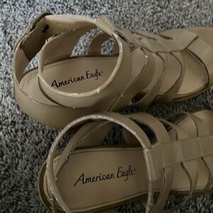 American Eagle Tan Block Heel Strappy Open Toe Women's 11