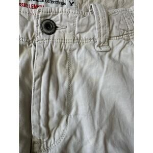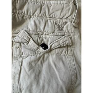 American Eagle Classic Length Cargo Shorts Size 30 waist.  In great shape, they do have a light yellow stain around the zipper area.
