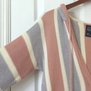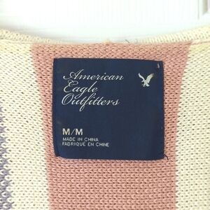 American Eagle Classic Striped Knit V-neck Kangaroo Hooded Sweater Pink Purple M