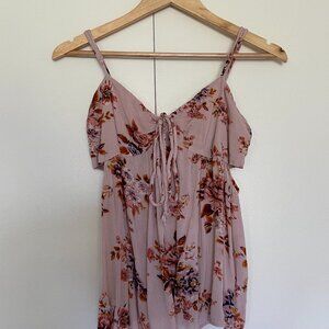 American Eagle Cold Shoulder Tie-Front Floral Spaghetti Strap Top Size M