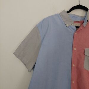 American Eagle Colorblock Short Sleeve Casual Button Up Shirt Colorful Fun XXL