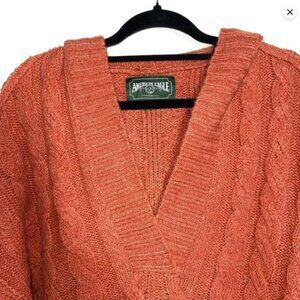 American Eagle Coral V-neck Chunky Knit Hooded Pullover Sweater Women's Large