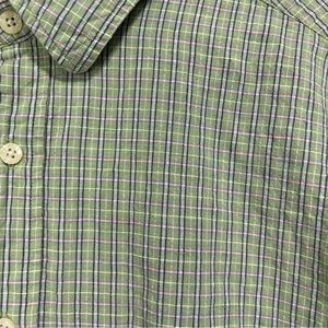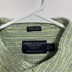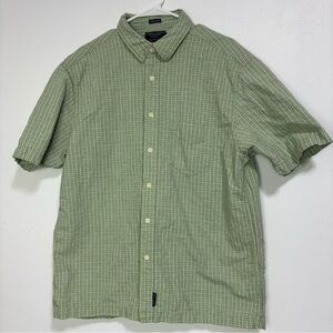 American Eagle Corded Check Linen Cotton Button Front Short Sleeve Casual Shirt Men Large