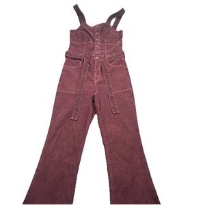 American Eagle Corduroy Flare Overalls Jumpsuit Burgundy Long Size 8