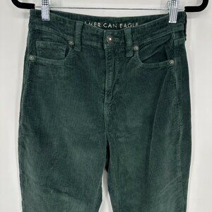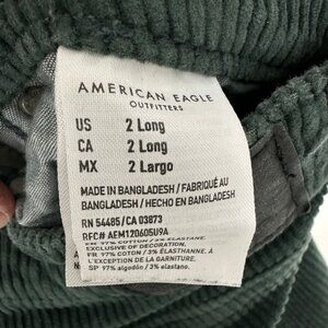 American Eagle Corduroy Mom Straight Pants 2L 2 LONG High Rise Stretch Green