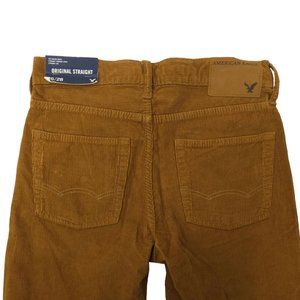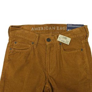 American Eagle Corduroy Pants Mens 26 x 26.5 Original Straight Leg Sits Below Waist Straight Through Thigh Brown AE NEW