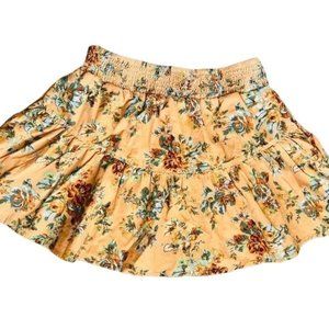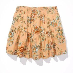 American Eagle Corduroy Tiered Floral Mini Skirt Size Medium Apricot Sage Green
