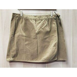 American Eagle Corduroy Wrap Mini Skirt, Button Close, Leather Tie, Sz 14, Tan