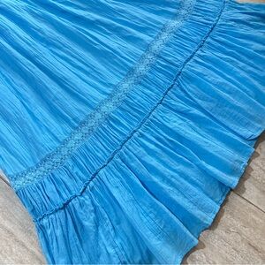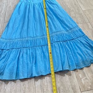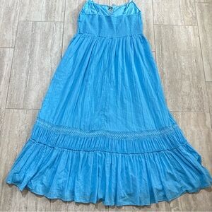 This beautiful American Eagle AE Corset Tiered Midi Dress in a vibrant blue is perfect for a bohemian-inspired look