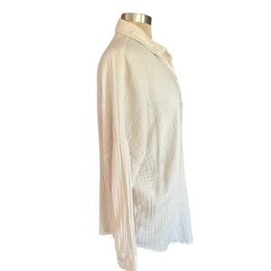 American Eagle Cotton Gauze Button Down Shirt Women MED Oversized Beachy Casual. Off-white or cream color. Patch pocket. Dropped shoulder.