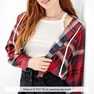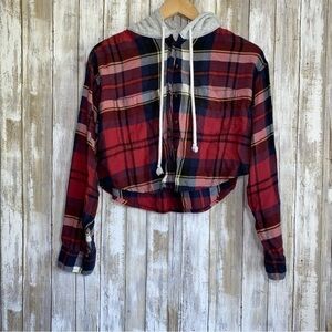 American Eagle Cozy Cabin Cropped Hoodie Flannel