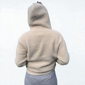Soft sherpa hoodie by American Eagle. So warm and comfortable, perfect for looking cute on colder days. Features a kangaroo pocket and adjustable drawstrings. Size XS.
