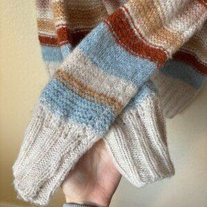 American Eagle Cozy Wool Blend Boho Striped Print Slouchy Sweater