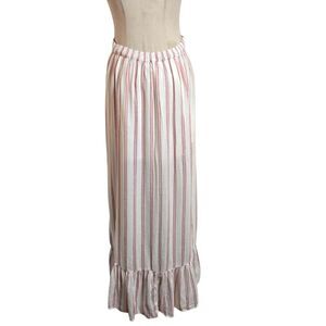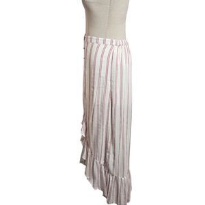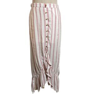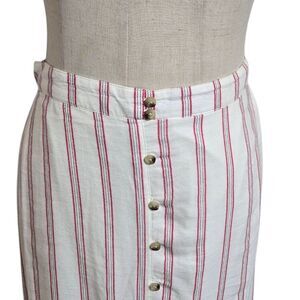 American Eagle Cream And Striped Button-Down Midi High Low Skirt