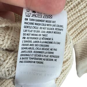Excellent preowned condition. Cream long sleeve chunky knit V-Neck oversized button up cardigan sweater. Cotton/acrylic material. Approx. measurements: Shoulder to hem 20", pit to pit 25", sleeve from neck to sleeve hem 29". Size XS.