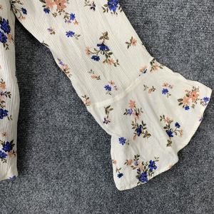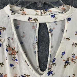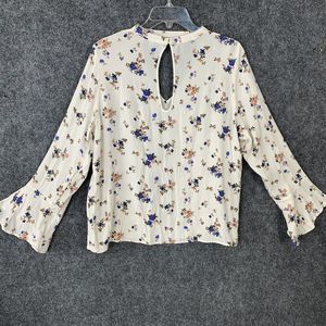 American Eagle Cream Floral Long Sleeved Ruffled Crepe Rayon Keyhole Top Sz XL