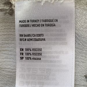 Add an elegant flair to your wardrobe with this American Eagle Outfitters blouse. This colorful top features a relaxed fit and a beautiful floral pattern that will make you stand out in any party or cocktail occasion. The keyhole neckline and flared sleeves add a bohemian touch to the blouse, which is made of lightweight and machine washable rayon crepe fabric. The blouse is perfect for any season, whether it's winter, summer, fall, or spring. The pullover closure and collarless style make it easy and comfortable to wear, while the ruffle and button accents give it a unique and stylish touch. This blouse is a size XL and has been made in Turkey