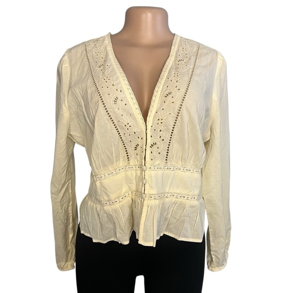 American Eagle Cream Long Sleeve Lace Blouse