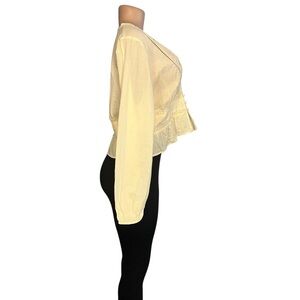 This elegant cream top features delicate lace detailing, perfect for adding a touch of sophistication to any outfit. Ideal for both casual and formal occasions. Size Large