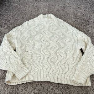 American Eagle Cream Mockneck Cropped Chunky Sweater