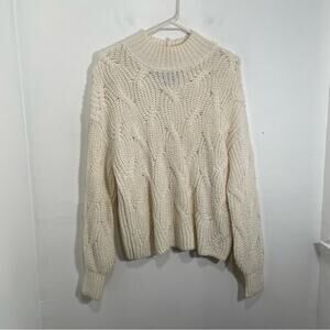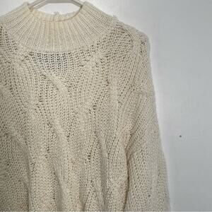 American Eagle Cream Oversized Cable Knit Pullover Sweater Medium