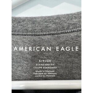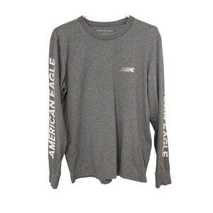 American Eagle Crewneck Long Sleeve T Shirt Mens Small Standard Fit Gray Active