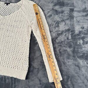 American Eagle Crochet Boho Open Knit Sweater XL Beige Long Sleeve Coastal Beach