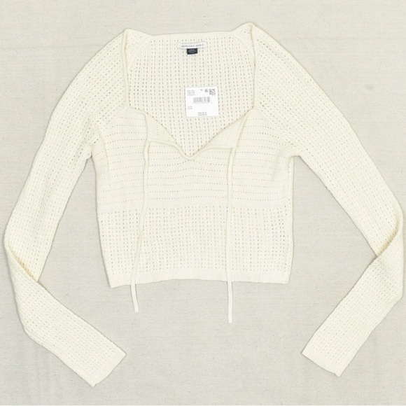 American Eagle Crochet Cream Long Sleeve Crop Size Small