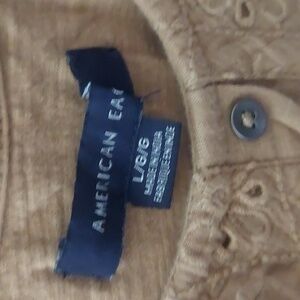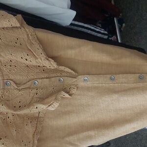 American Eagle Crochet Flutter Sleevless Tank Top Blouse Tan L Button Front
