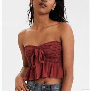 American Eagle Crochet Front Tie Lightweight Viscose Crop Top Women's Sz Medium