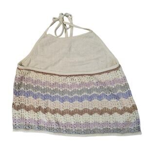 American Eagle Crochet Halter Women XL White Knit Sleeveless Boho Festival Indie