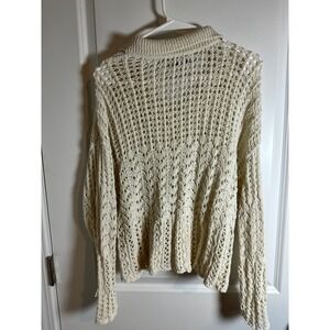 American Eagle Crochet Knit Lace Up Tassel Sweater Cream Medium Women