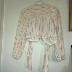 American Eagle Crop Tie Front Long Sleeve Stripe Linen Blend Top size Small