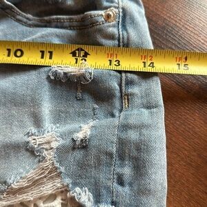 These AE booty shorts come embossed with floral pockets to show through on the thigh when wearing. Distressed look in excellent like new condition. Size 2