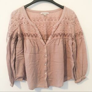 American Eagle Cropped Eyelet Button Down Top. Perfect Top to transition into fall. Pretty Mauve pink color.