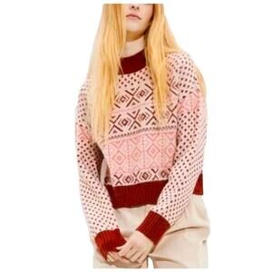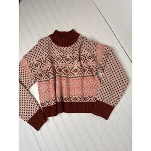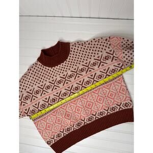 American Eagle Cropped Fair Isle Pullover Sweater Brown Peach Cream Womens Sz M