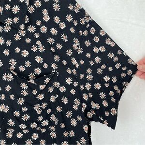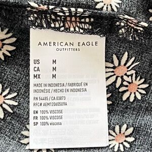 American Eagle Cropped Floral Black & Cream Button-Up Women's Blouse Size Medium