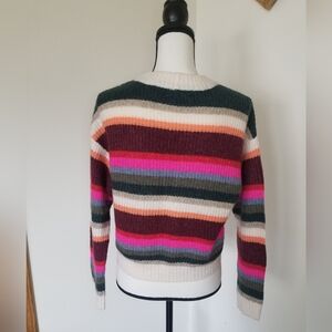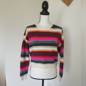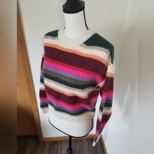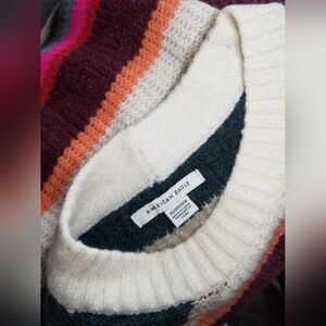 American Eagle Cropped Knit Sweater Shirt, great pre worn condition, size xs oversized, multicolored fall colors, stripes, 36% acrylic, 36% viscose, 24% polyester, 4% elastane