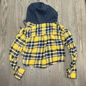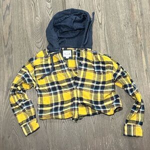 American Eagle Cropped Sweatshirt Hoodie Flannel Plaid Button Up Multicolor XS
