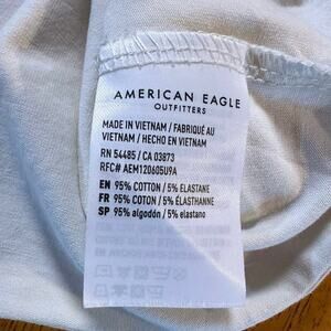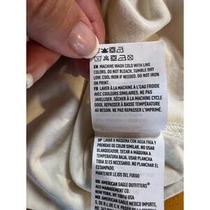 American Eagle Outfitters Women's Tank Top, Size XL Regular. This cream-colored, cropped tank features a striped pattern and is crafted from a blend of cotton and elastane for a soft and stretchy feel. It comes with spaghetti straps and is machine washable. Made in Vietnam. Pre-owned condition.