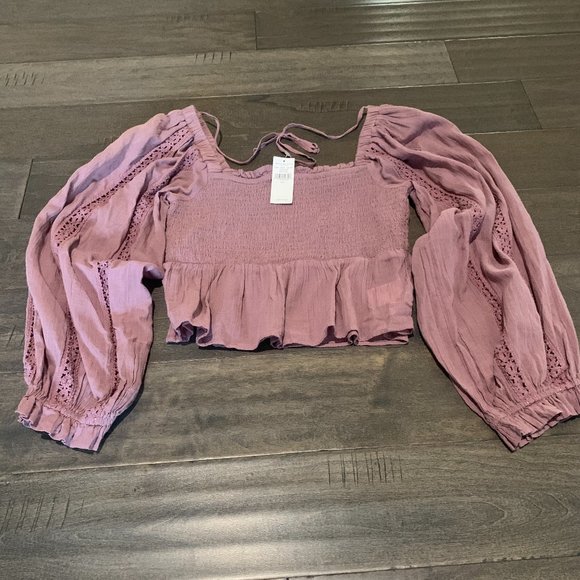 American Eagle Cropped Tie-Back Top | Long Sleeve | Trendy Casual Wear | NWT