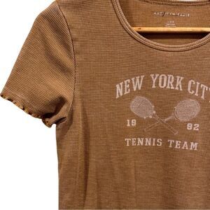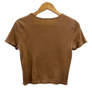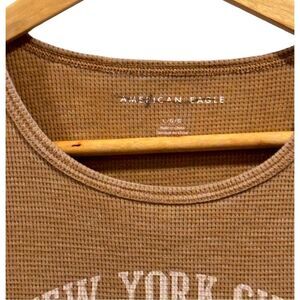 American Eagle Cropped waffle Tan ruffle trim Shirt Size L
