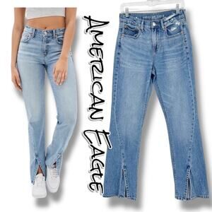 American Eagle Outfitters 90s Bootcut womens jeans in light wash. The bootcut jean is back in an updated high rise. Designed for curves with more room through the hip & thigh. Mid-weight structured denim with just enough stretch for everyday comfort