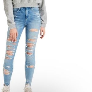 American Eagle Curvy Hi-Rise Ultra Distressed Skinny Jegging Jeans