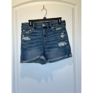 American Eagle Curvy Midi Distressed Cuffed Denim Jean Shorts Size 10