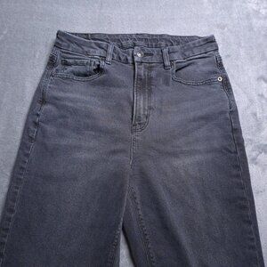American Eagle Curvy Mom Jeans 6 Short High Rise Faded Black Stretch