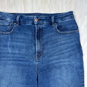 American Eagle Curvy Mom Jeans Distressed Ripped Knees Raw Hem Stretch Blue 8