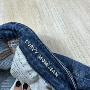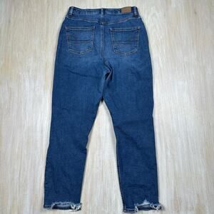 American Eagle Curvy Mom Jeans Distressed Ripped Knees Raw Hem Stretch Blue 8