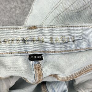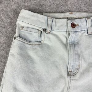 American Eagle Curvy Mom Jeans Womens 4R Light Wash Shark Bite Hem Stretch Denim. Condition is "Pre-owned"