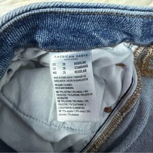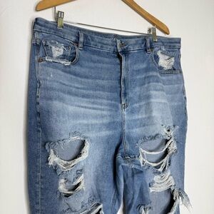 American Eagle curvy mom jeans plus size 20, distressed ripped jeans AE, women’s light wash denim, AE curvy fit jeans size 20 regular, high rise mom jeans frayed hem